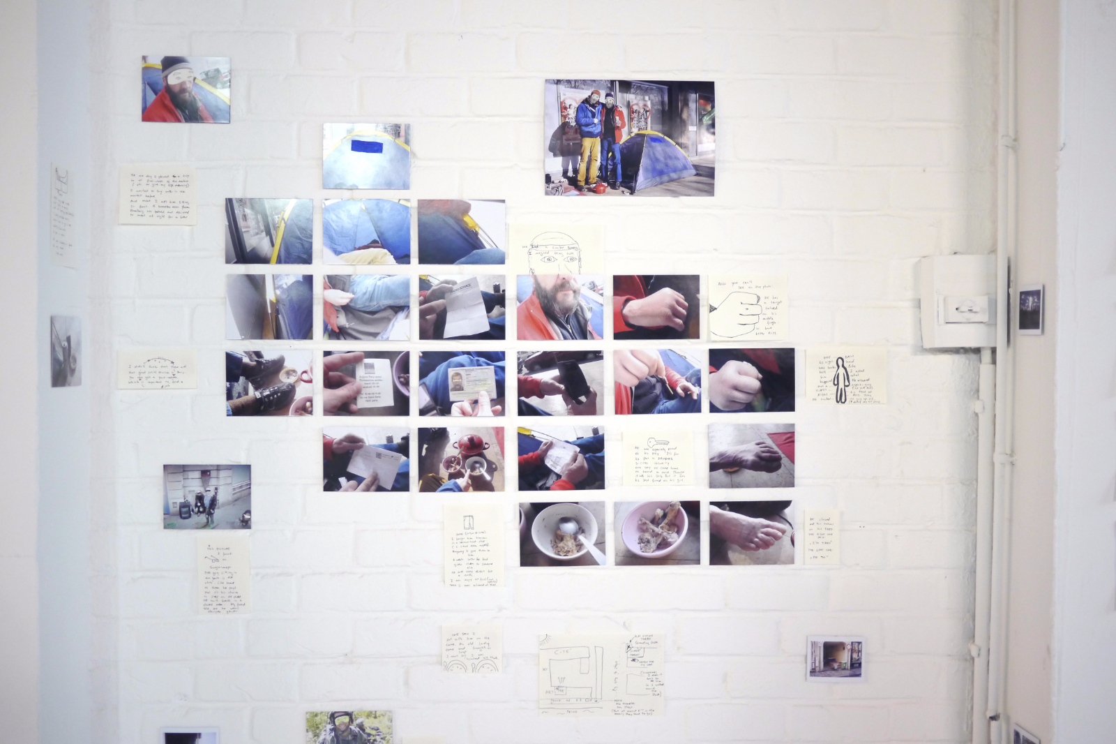 At that time, France was publicly debating national identity. Identification and social milieu began to interest me. I befriended a homeless man who slept in front of the Cité. He came from Germany and had served in the Foreign Legion. The conversations with him, the way he explained himself and the world, and my reactions, became the focus of my installation.